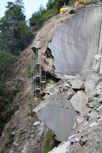 Architecture made with locally sourced material has a strong site sensitivity that is generally considered to be ‘good’ and often relates nowadays to preservation and a sustainable idea of building. To preserve places with vernacular architecture, traditionally used local material is prescribed by authorities for new construction, as is the case in Vals for the use of gneiss stone. Contradictory to the wish for the use of local material, the quarries and mines for sourcing the raw material are seen as harmful to the environment. The ‘other’ site, necessary for our building, is often less wished-for, hence laws that require reclamation of the mountain landscape after sourcing the stone.